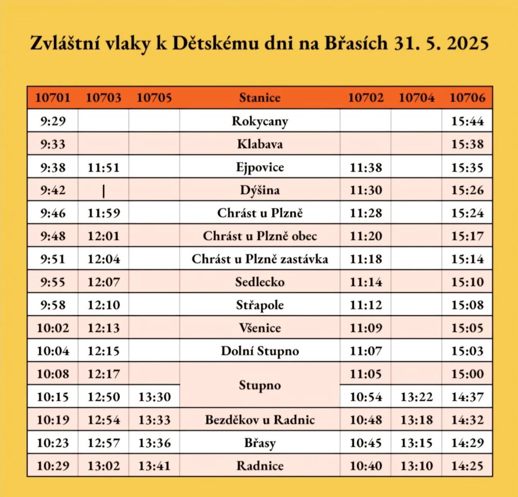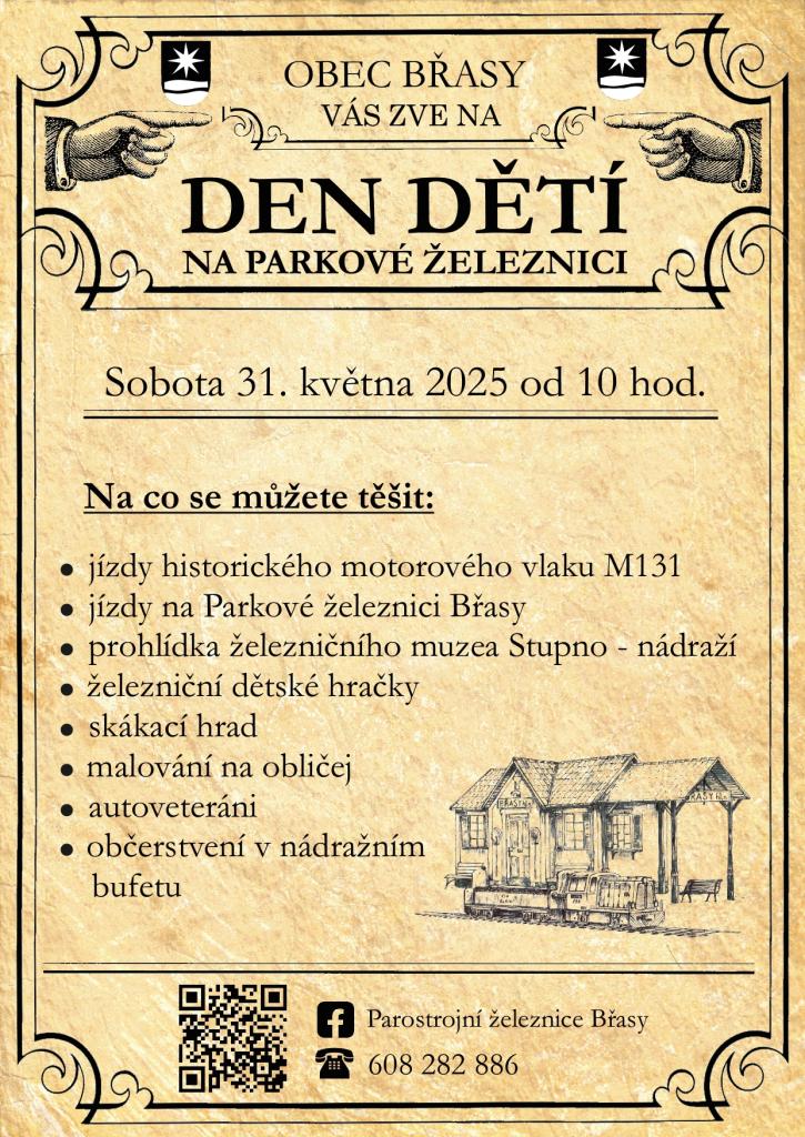 Přijďte oslavit Den dětí na Parkové železnici v Břasích! V sobotu 31. května 2025 od 10 hodin se můžete těšit na jízdy historického motorového vlaku M131, prohlídku železničního muzea Stupno - nádraží, a na spoustu zábavy pro děti včetně skákacího hradu, malování na obličej a občerstvení v nádražním bufetu. Nezapomeňte si užít také výstavu autoveteránů a další železniční dětské hračky.