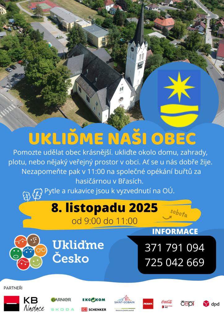 Pomozte udělat obec krásnější. Ukliďme okolo domu, zahrady, plotu, nebo nějaký veřejný prostor v obci. Ať se u nás dobře žije. Nezapomeňte pak přijít v 11:00 za hasičárnu v Břasích, na společné opékání buřtů.